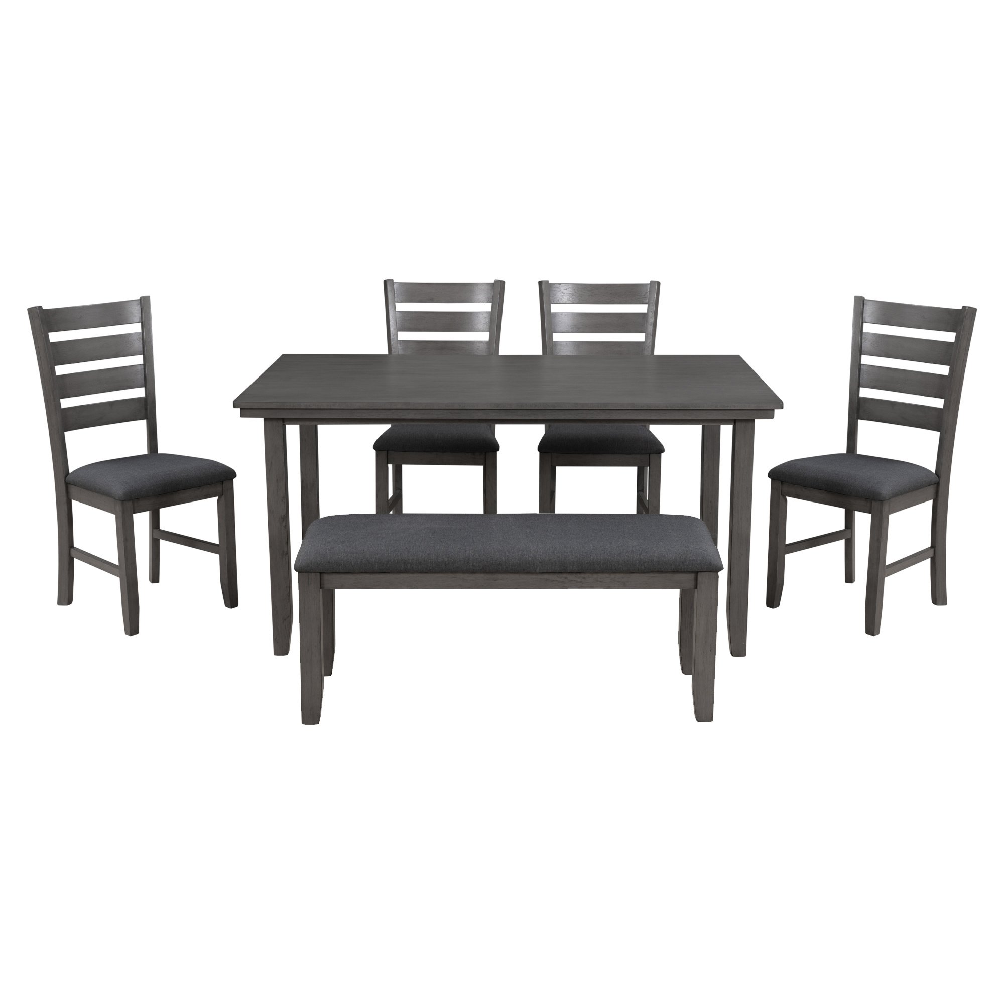 Dining Room Table and Chairs with Bench, Rustic Wood Dining Set, Set of 6 (Gray)